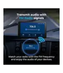 Het geluid kan via FM‑transmissie naar je autospeakers worden gestuurd. Daarnaast heeft het scherm een ingebouwde 3W‑speaker voor situaties waarin je geen FM‑kanaal wilt gebruiken.