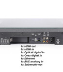 De soundbar beschikt over meerdere 4K compatibele HDMI aansluitingen, inclusief eARC, waardoor je eenvoudig je tv en andere apparaten aansluit. Daarnaast ondersteunt dit model Chromecast, Spotify Connect, AirPlay en Wifi, zodat je moeiteloos muziek streamt vanaf je smartphone of tablet.