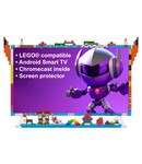 Nieuwe unieke KIVI KidsTV Google Android Smart TV met LEGO compatible omlijsting. Speciaal extra stevig ontworpen en ook geschikt voor kinderen met extra stevig glas, een combinatie van geavanceerde technologie, veiligheid en creatieve mogelijkheden. Complete smart tv met practisch alle app's en ingebouwde chromecast. Het is niet zomaar een tv: het is een unieke ervaring voor leren, spelen en genieten. Compatible met Lego* dus je kunt je eigen tv ontwerpen. Unbreakable: Het scherm is bedekt met 4 mm dik gehard glas dat bestand is tegen stoten, zelfs van zware objecten. Inclusief bevestigingspads om te voorkomen dat de tv omvalt tijdens actief spelen.
